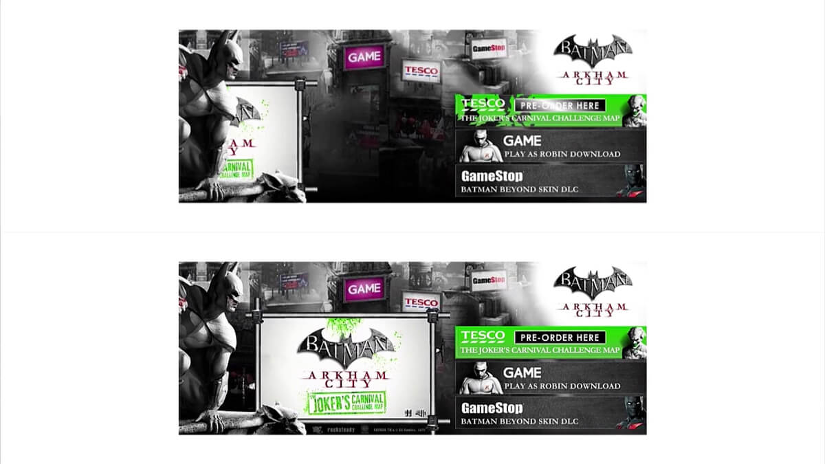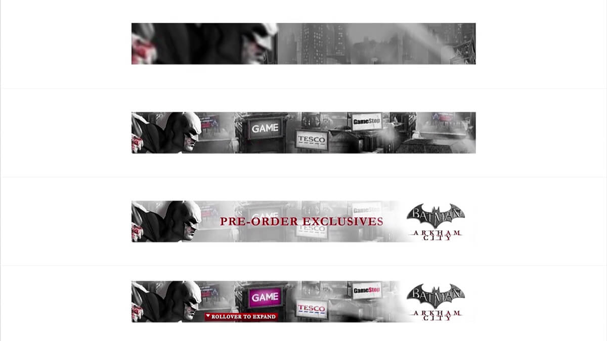 BRIEF - Warner Bros. Interactive Entertainment commissioned a dynamic digital asset kit to promote the launch of Batman: Arkham City. The brief focused on delivering a gritty, atmospheric suite of creative that captured the dark tone and cinematic scale of the game. Assets included static and animated banners, homepage takeovers for the 3 main characters (Batman, Joker & Cat Woman), all in rich mediaformat for use across gaming platforms, entertainment sites and retail partner channels. The creative needed to reflect the depth and complexity of the game world while celebrating one of pop culture’s most iconic heroes. Plenty of later nights on this project